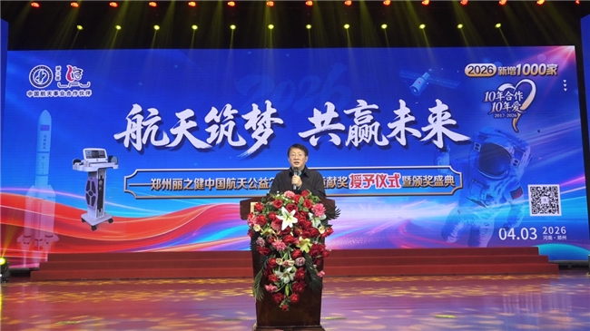 2026年4月3日至5日,“航天築夢 共贏未來”鄭州麗之健中國航天公益30年特殊貢獻獎授予儀式暨之健中國航天公益30年特殊貢獻獎授予儀式暨2026春季頒獎盛典在鄭州隆重舉行。中國航天基金會副理事長戴鵬、中國首批航天員趙傳東、中國航天基金會事業發展一部部長助理劉明明等嘉賓出席,來自全國各地的優秀團隊代表與顧客代表齊聚一堂,共同見證這一榮耀時刻